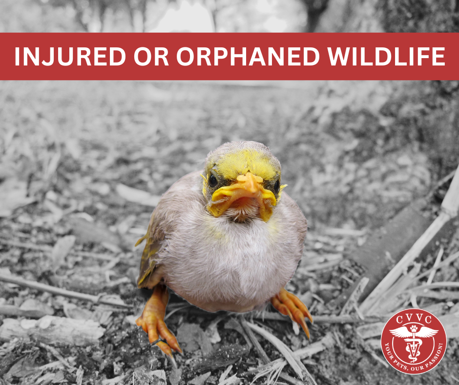 Please don’t bring wildlife to our clinic. We’re not licensed for wildlife and cannot accept, treat, or house wild animals.